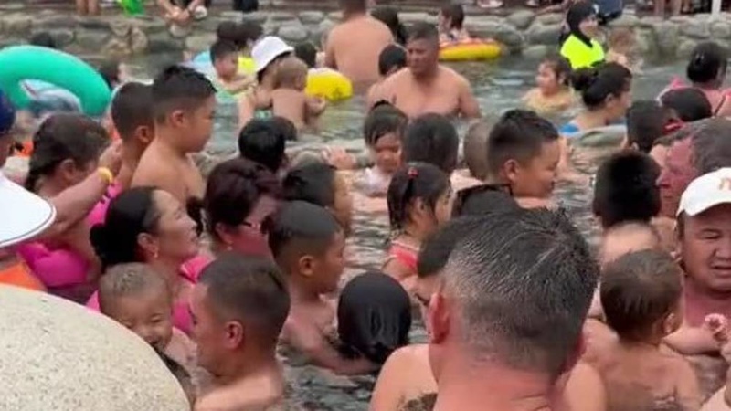 AKIPRESS.COM - One of the vacationers shared a video showing hot springs in Issyk-Kul fully booked.