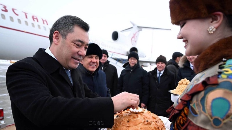 President Japarov was met by President of Tatarstan Rustam Minnikhanov and other officials upon arrival.