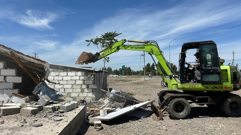 AKIPRESS.COM - Demolition of unauthorized objects is underway in Chui region, reports the State Construction Agency...
