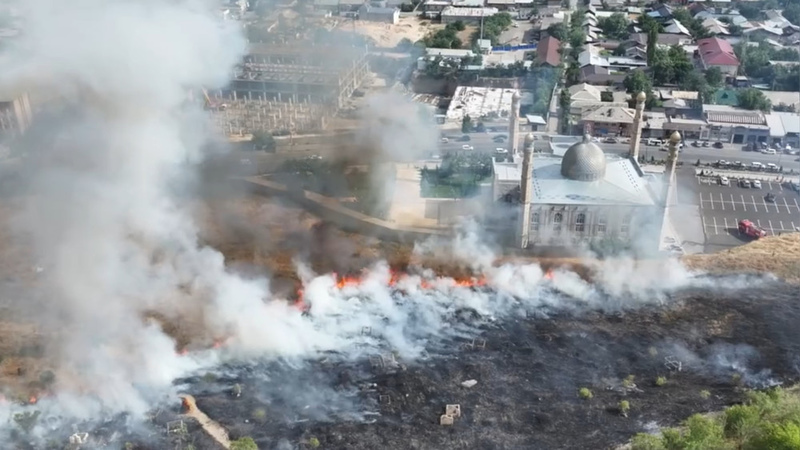 Fire occurs on Mount Sulaiman-Too near Osh city central mosque