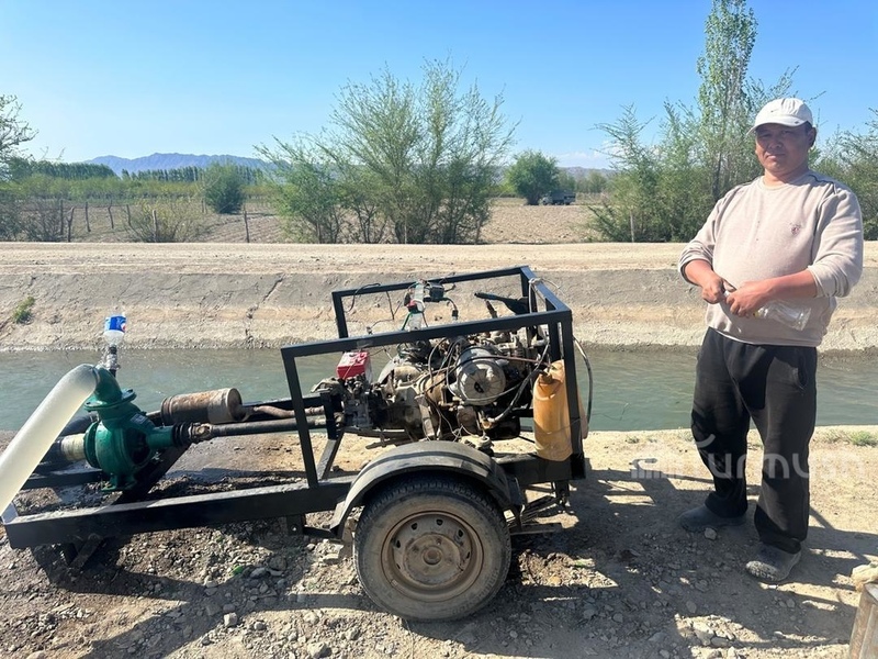 Batken villager assembles water pump from car parts to address irrigation water scarcity