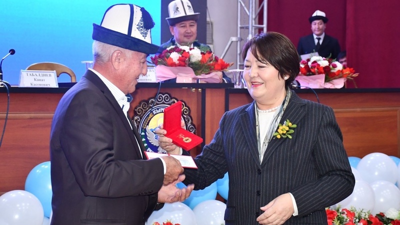 AKIPRESS.COM - Minister of Education Dogdurkul Kendirbaeva took part in an event dedicated to teachers' professional holiday in Kara-Suu district of Osh region on October 15...