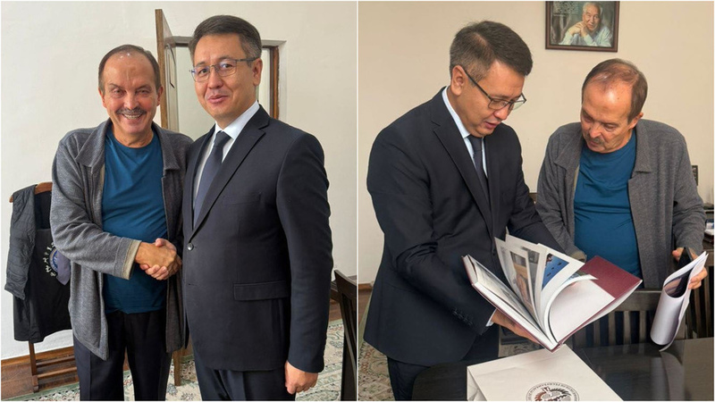 AKIPRESS.COM - Deputy Minister of Culture, Information and Youth Policy of Kyrgyzstan on November 10 Timurlan Ajymaliev met with Russian TV presenter, director, producer, screenwriter and master of the intellectual club "What? Where? When?" Andrey Kozlov, the press service of the Ministry of Culture reported...