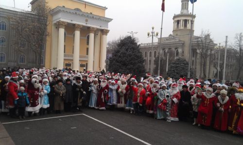 March of Santas and Snow Maidens held in Bishkek