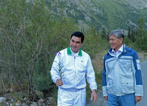 Presidents Atambayev, Berdimukhamedov take a stroll in Ala-Archa Park
