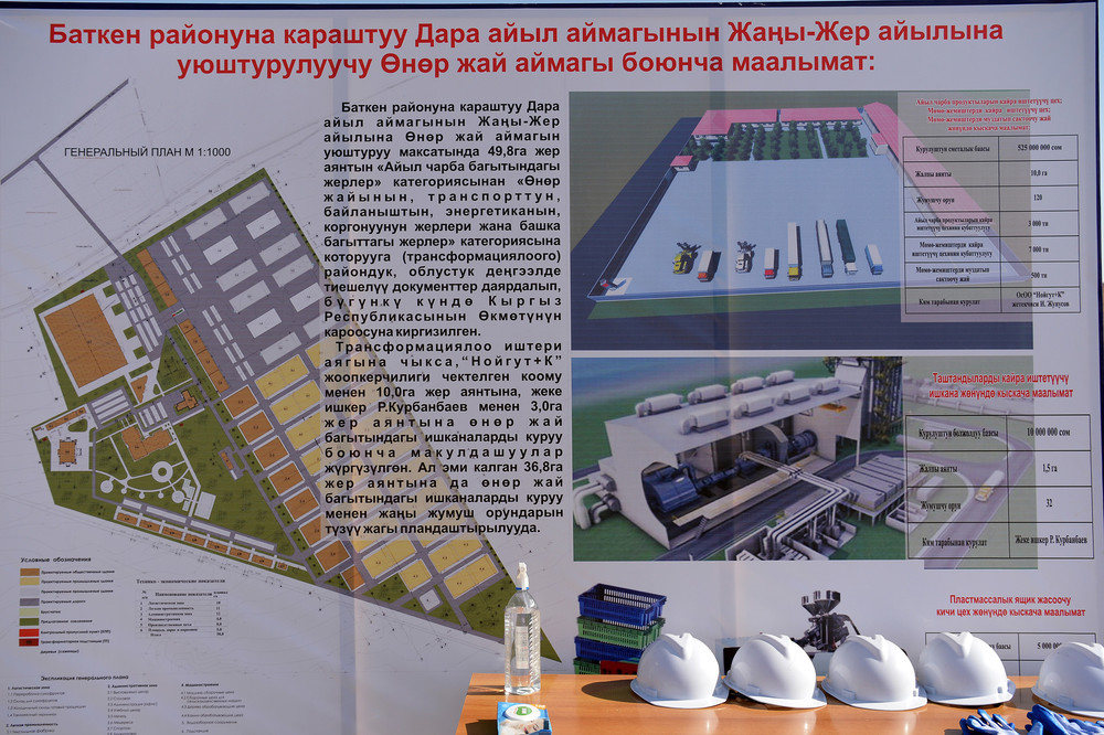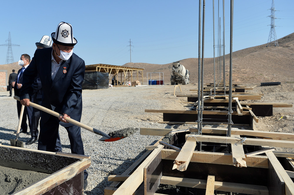Jeenbekov visits construction site of logistical center and textile factory in Batken