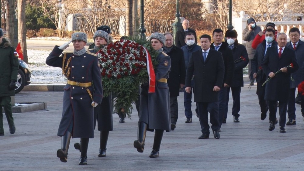 Speaker Talant Mamytov lays flowers at Tomb of the Unknown Soldier in Moscow