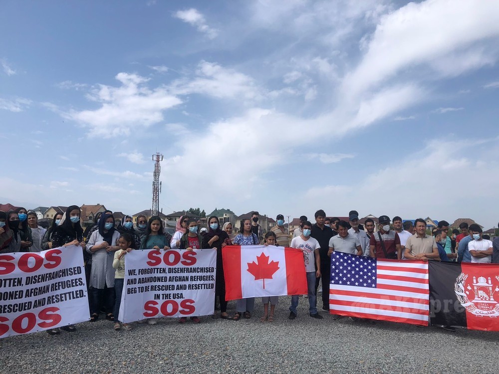 Afghan refugees rally outside US Embassy in Bishkek