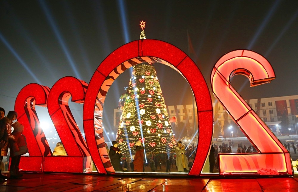 Osh new year's tree lit up