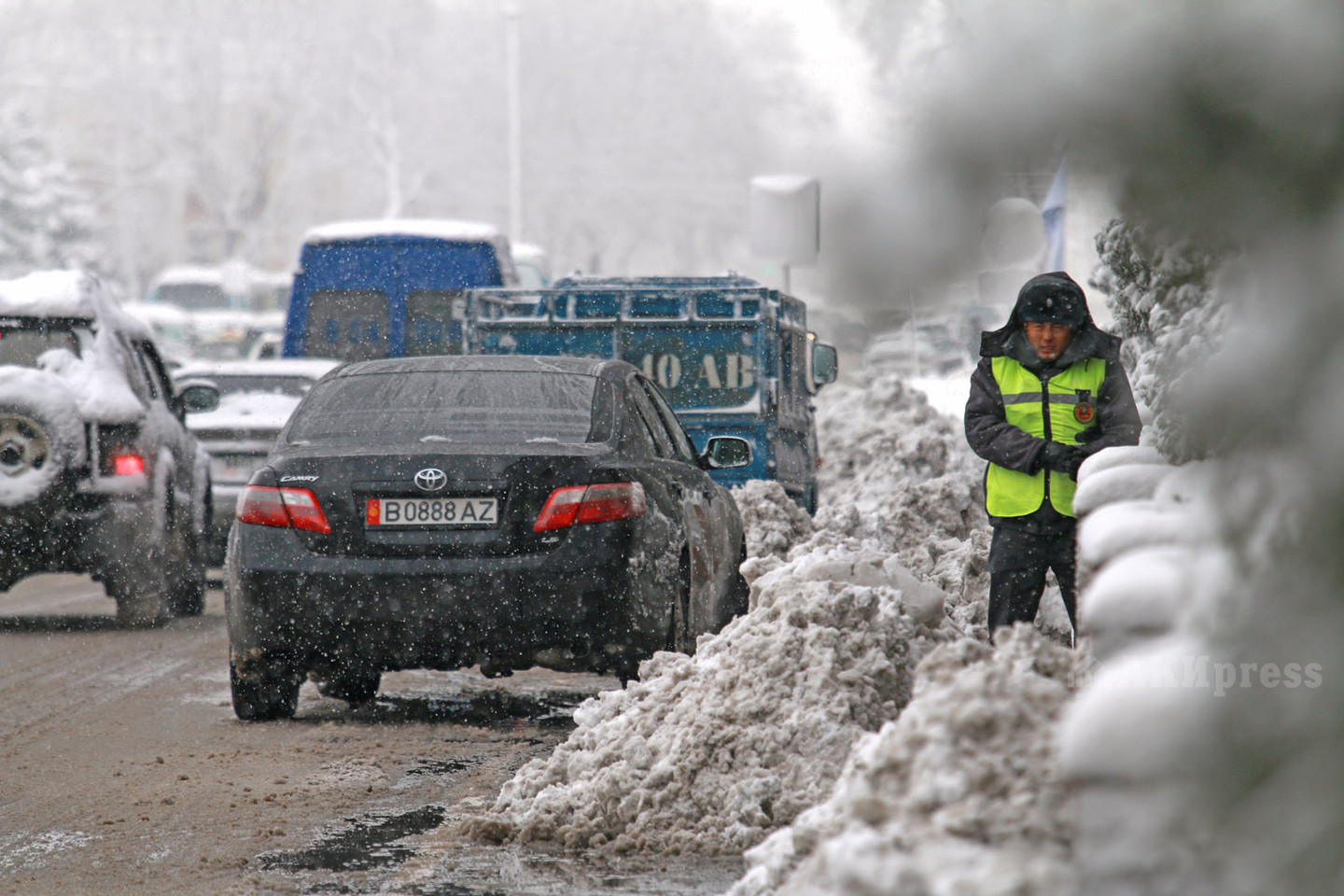 Snow falls in Bishkek