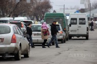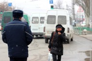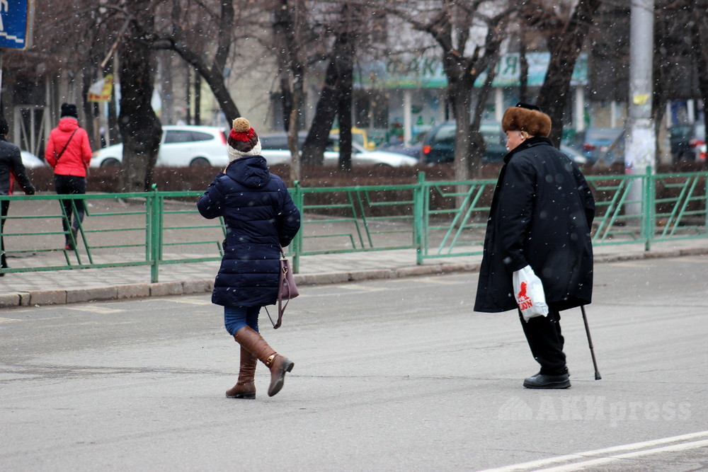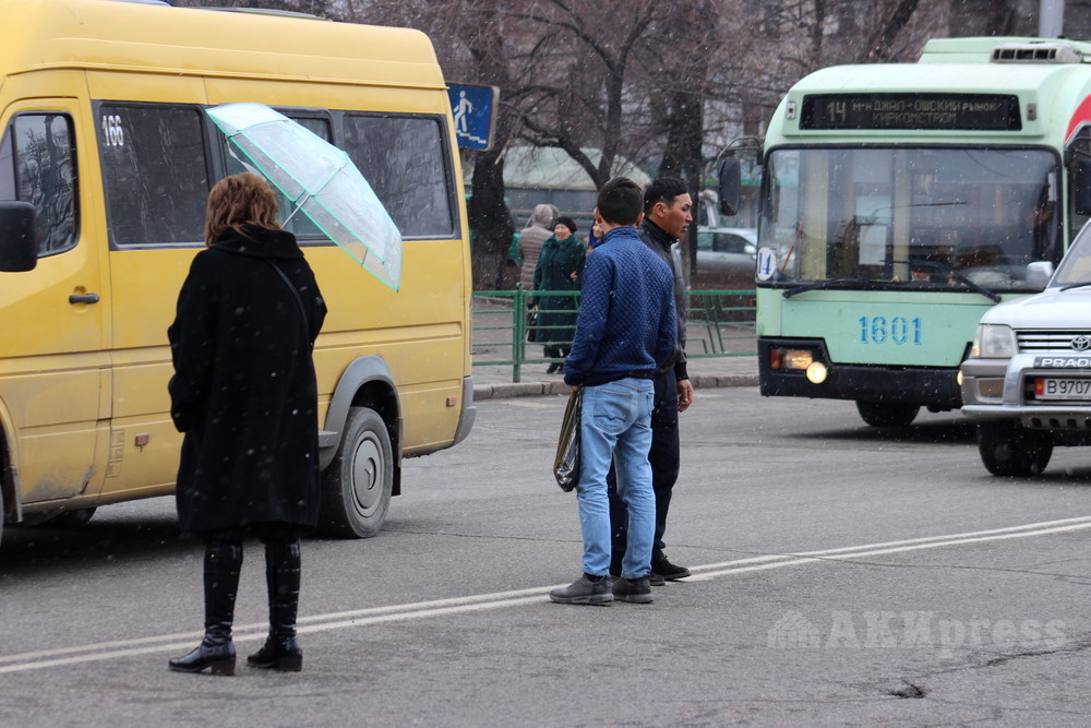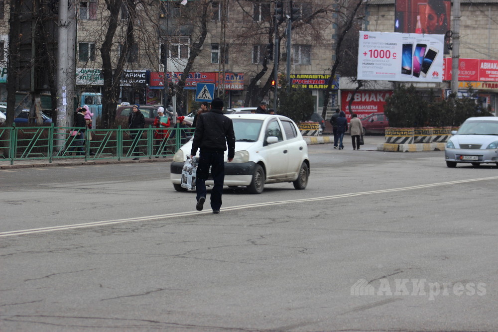 People crossing motorway in wrong places. Bishkek. March 16, 2018